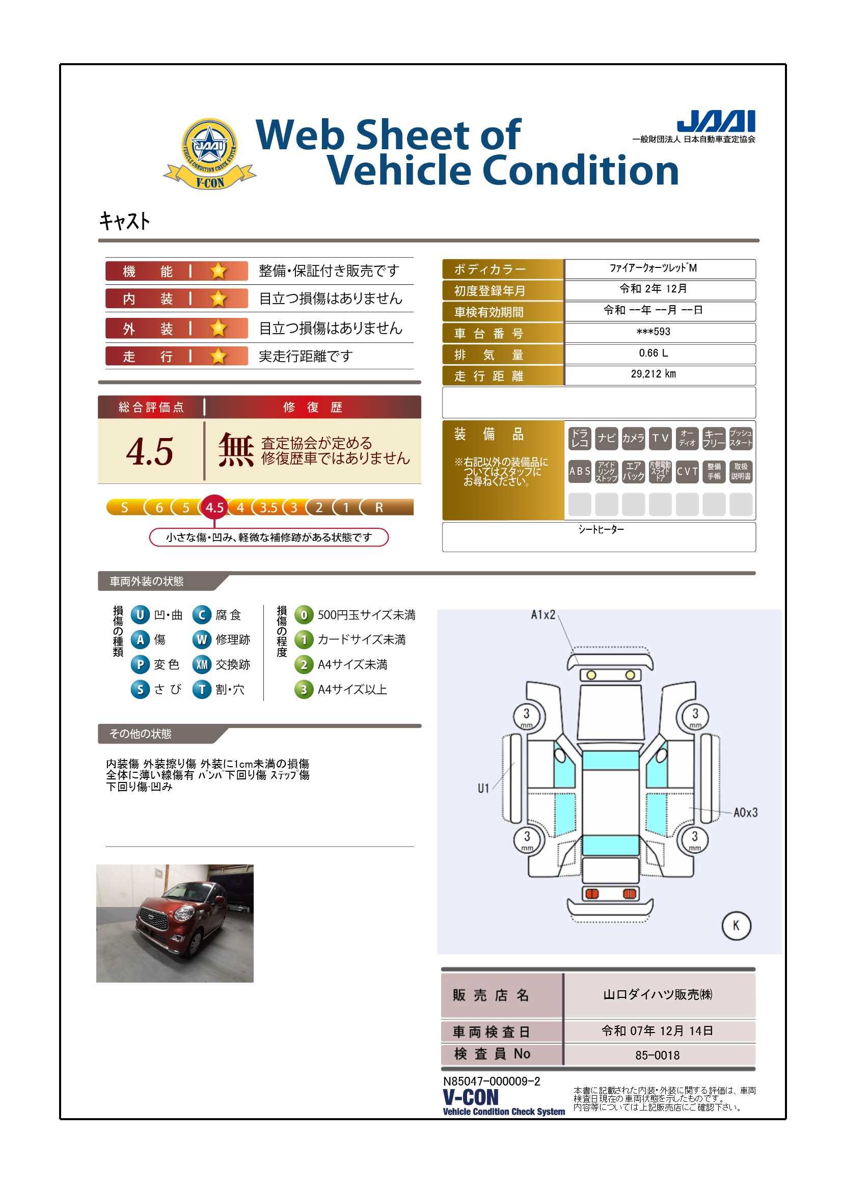 | 定期点検整備コメント | 定期点検整備:付、定期点検整備料金:車両価格に含む | ||