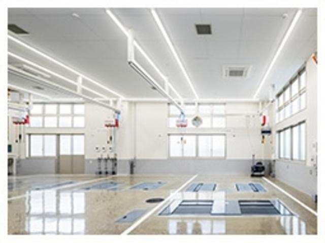 点検作業を行うサービス工場です。愛車の点検の様子は、お手元のタブレット端末で確認できます。