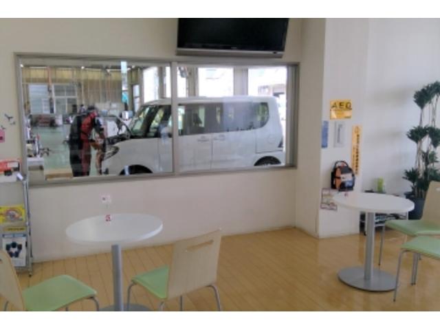 待ち時間の間にショールーム内の窓ガラスから自分の車が整備されている作業風景が見れます。
