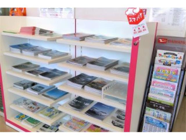 カタログ一覧スペースです。気になるお車がございましたらお気軽にスタッフにお声がけください
