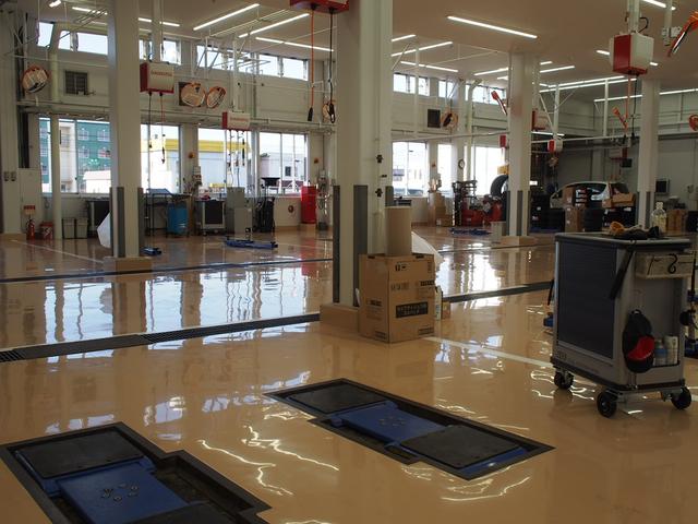 最新鋭の設備を整えたサービス工場。メーカーの技術認定を受けたプロの整備士が大切なおクルマの整備を実施