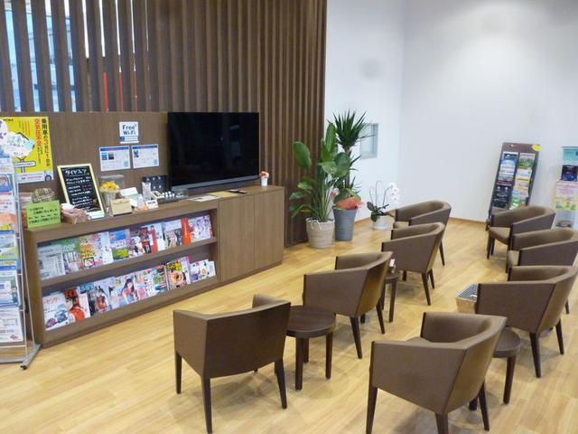 ひとりがけの待合室です。点検をお待ちいただく間など、テレビを見ながらゆっくりお過ごしいただけます