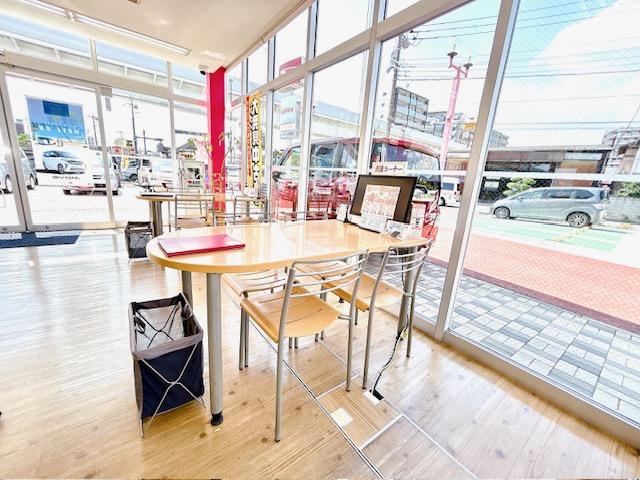 全面ガラス張りのため、開放的で明るくどこからでも展示車両を見ながら商談ができます。