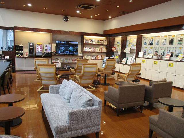 • 当店自慢の待合室です。大型TV、ゆったりソファーで快適なお時間をおくつろぎ下さいませ。