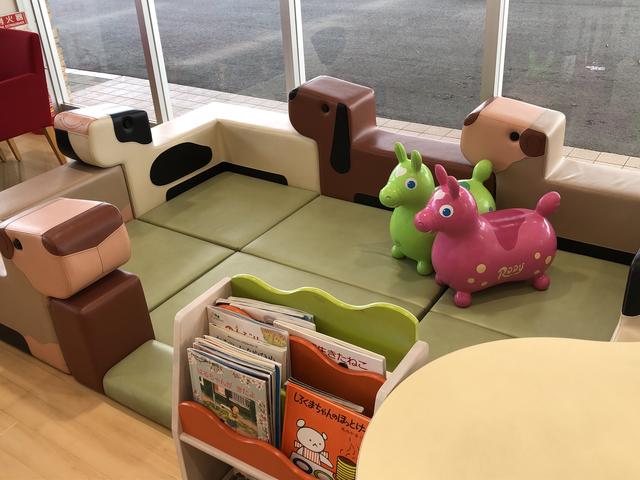座り心地の良いサービス待合ソファ、落ち着いた商談スペース、キッズスペースもございます!!
