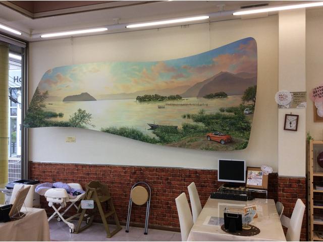 • 店内にはブライアントウイルムズの曲面絵画で滋賀県の美しい琵琶湖の絵を飾ってます。是非見に来て下さい。
