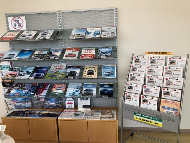 • 左は新車カタログ、右は中古車カルテ。「新車も気になるな〜」と言う方も、まとめて御相談下さい!
