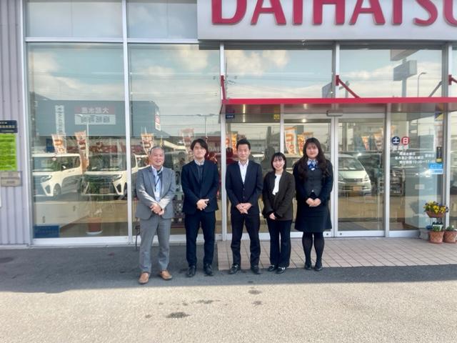 一人一人のお客様を大切にし、寄り添ったご提案を心掛けます!営業経験はまだ短いですが、笑顔と元気をモットーにおもてなしさせて頂きます。【中嶋】お客様のニーズにしっかり応え、安心してお車に乗って頂けるよう全力でサポートいたします!あなたにピッタリな一台を一緒に探しましょう!【藤川】