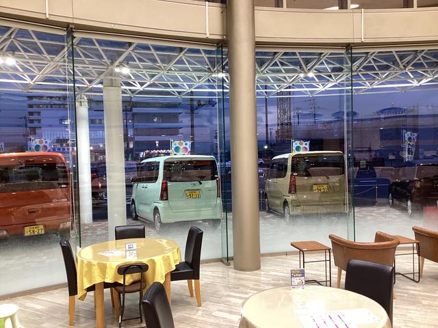 ショールームから新車中古車の展示車が見渡せます。屋根付きですので、天候も気にするご覧いただけます。