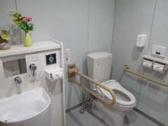 広〜いバリアフリーのWCも完備しています♪オムツ交換台もあるので便利です♪ ※朝・昼・夕に清掃と消毒
