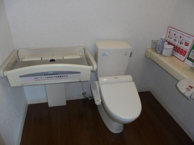 女性用トイレにはベビーシートがございますので、おむつ交換もして頂けます。