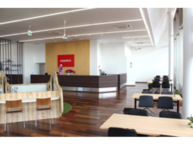 各務原市鵜沼の国道21号線沿いに初めて岐阜ダイハツ直営店がオープンいたしました。運転していても一際目立つ大きな赤い看板が目印で、広々とした駐車場を完備。県内最大規模を誇る店内は、白を基調としたカフェ風のつくりとなっており、ひとり掛けのゆったりソファでTVを見ながらお待ちいただけたり、テーブル席やソファ席もございますのでお客様にはお寛ぎいただけること間違いなしです。