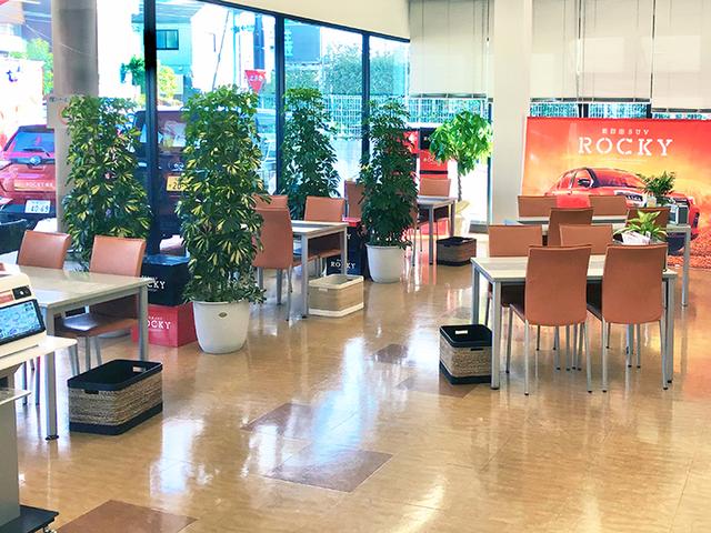 緑を多く取り入れた落ち着きのあるショールーム。キッズルームも用意しておりますのでゆっくりできますよ
