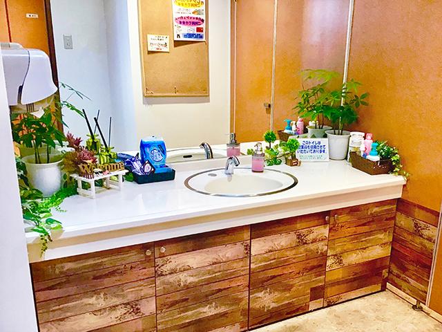 お手洗いにも緑を取り入れ落ち着く空間を演出しました。季節ごとに変化する飾りつけをお楽しみください。