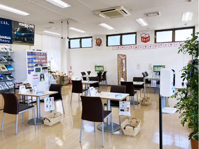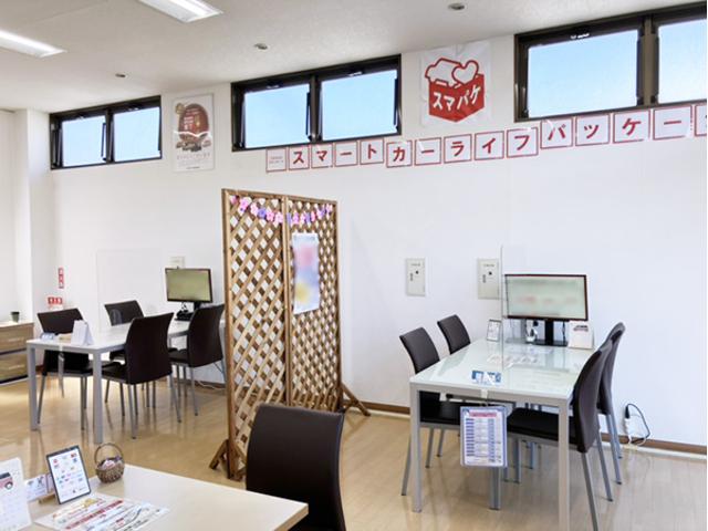 店内入って斜め左方向に受付を設置しております。営業スタッフが笑顔でお出迎え致します。