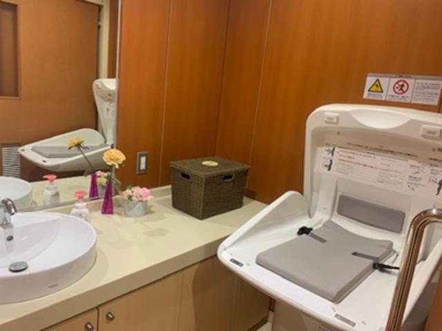 • おむつ替えスペースもございます。緊急時に備え予備のおむつもご用意しております。