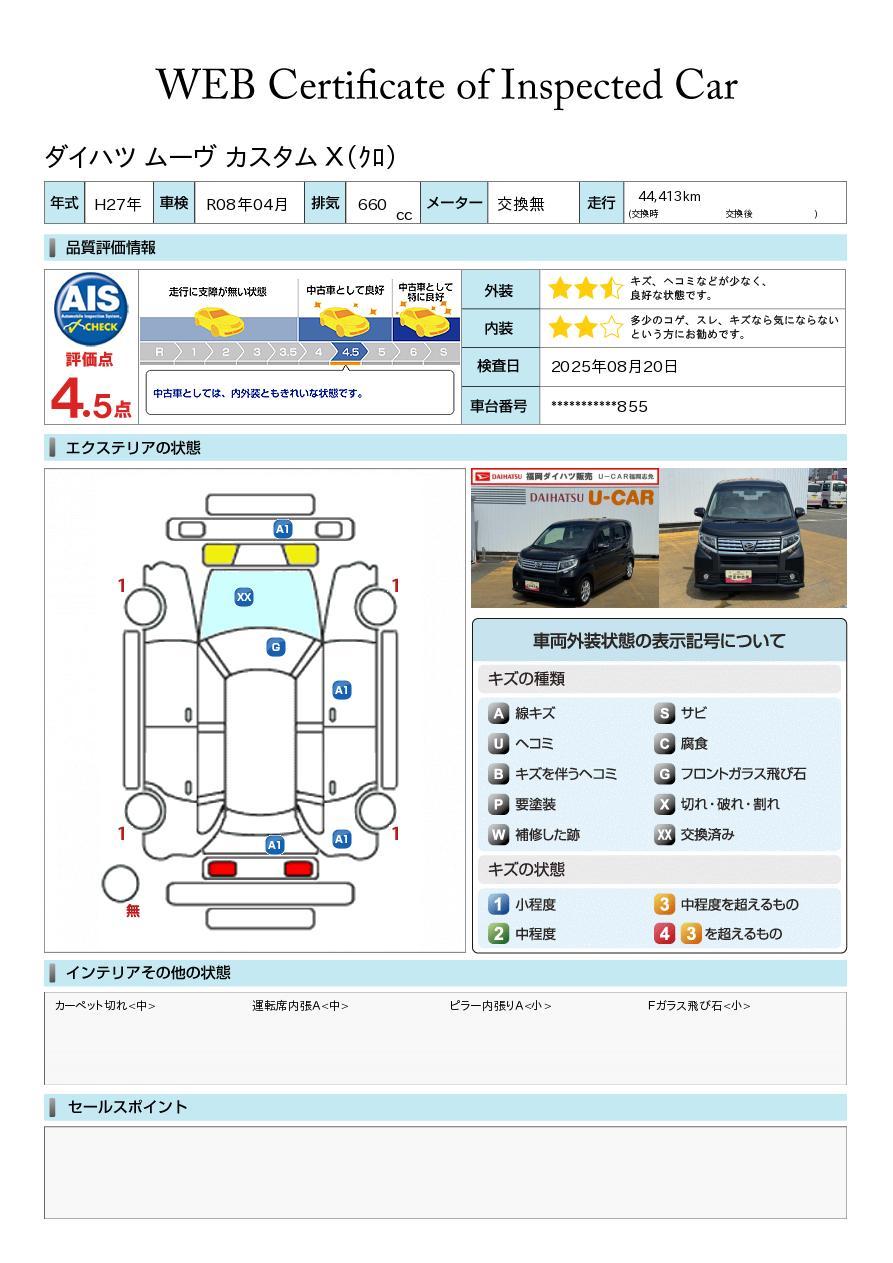 株式会社AISの車両状態証明書となります。