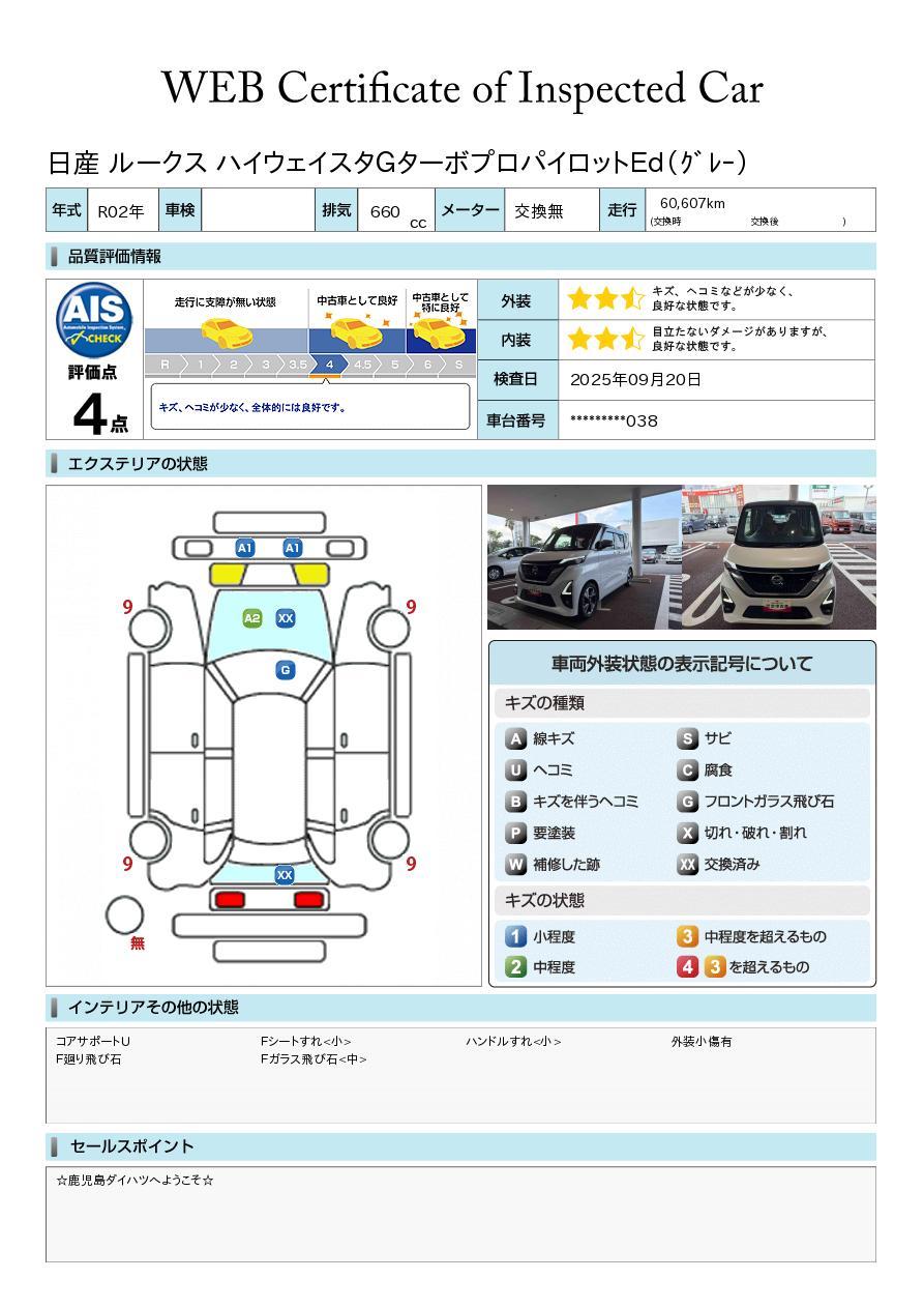 株式会社AISの車両状態証明書となります。