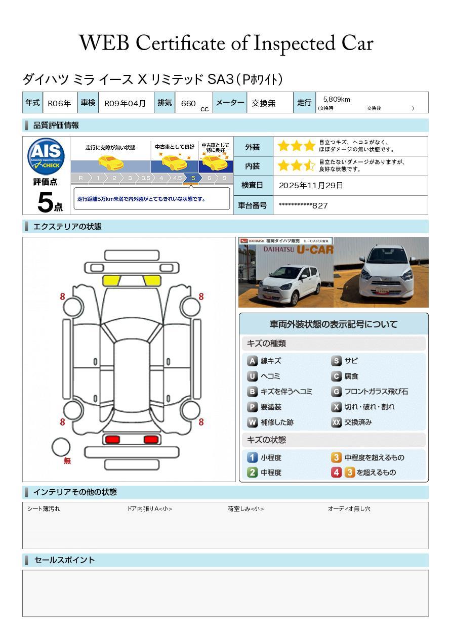 車両状態証明書が付いておりますので、安心してお選び出来ます。詳しくは、スタッフまでお気軽にお問合せください。