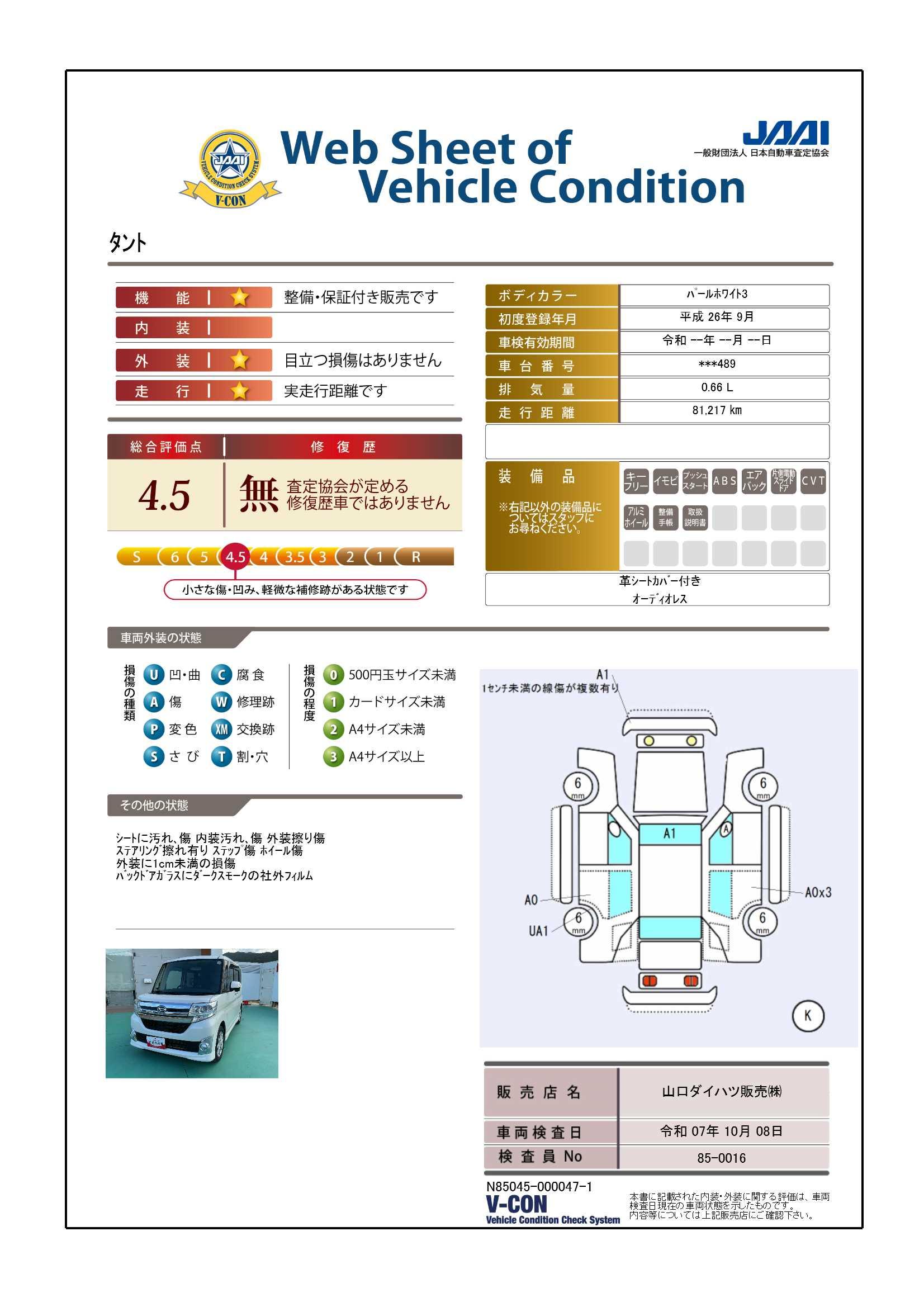 | 定期点検整備コメント | 定期点検整備:付、定期点検整備料金:車両価格に含む | ||