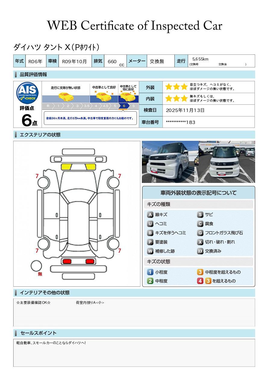 車両状態証明書が付いておりますので、安心してお選び出来ます。詳しくは、スタッフまでお気軽にお問合せください。