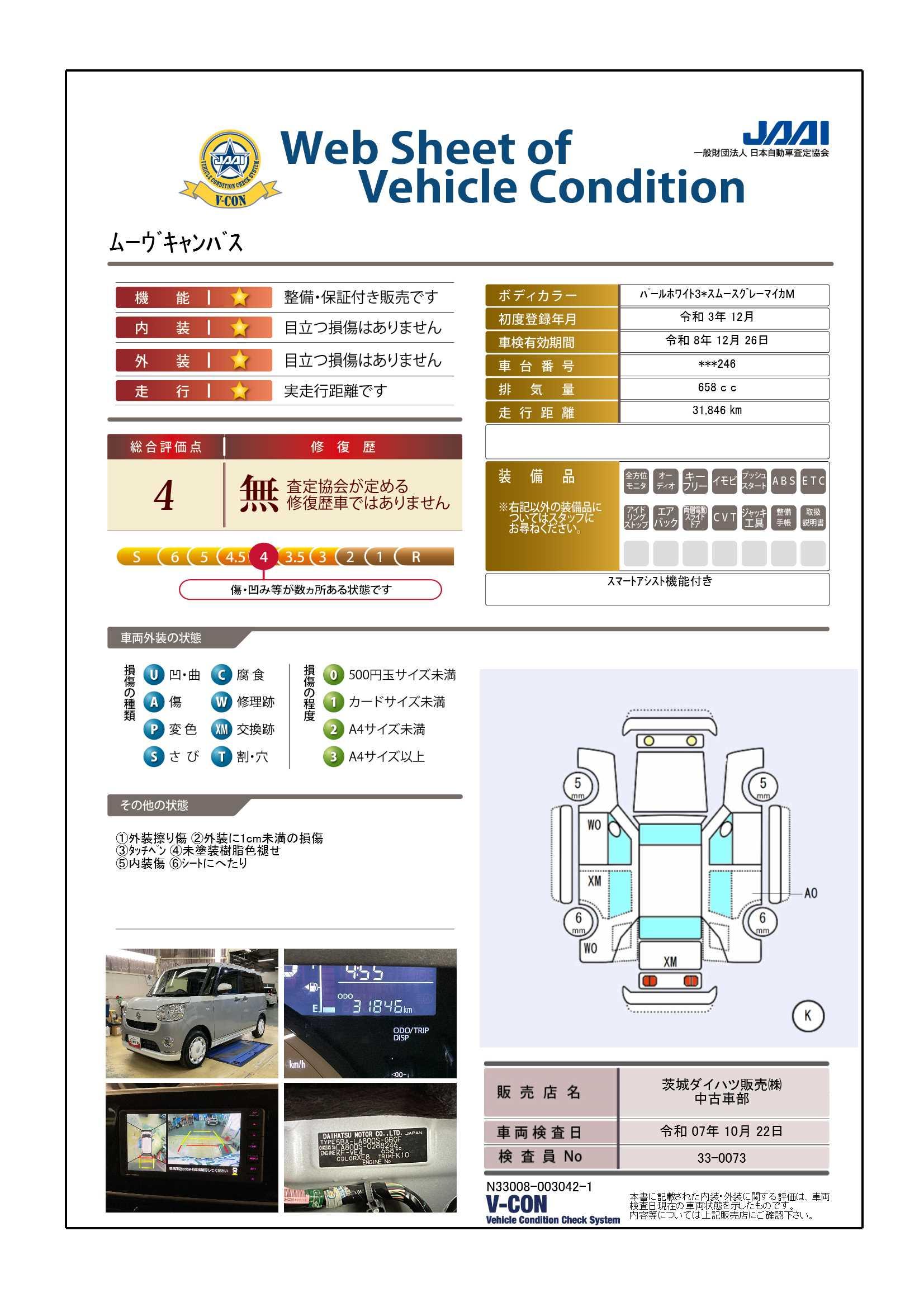 | 定期点検整備コメント | 定期点検整備:付、定期点検整備料金:車両価格に含む | ||