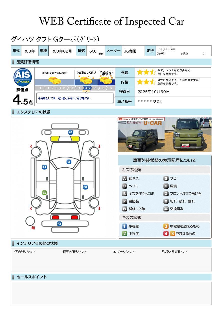 車両状態証明書が付いておりますので、安心してお選び出来ます。詳しくは、スタッフまでお気軽にお問合せください。