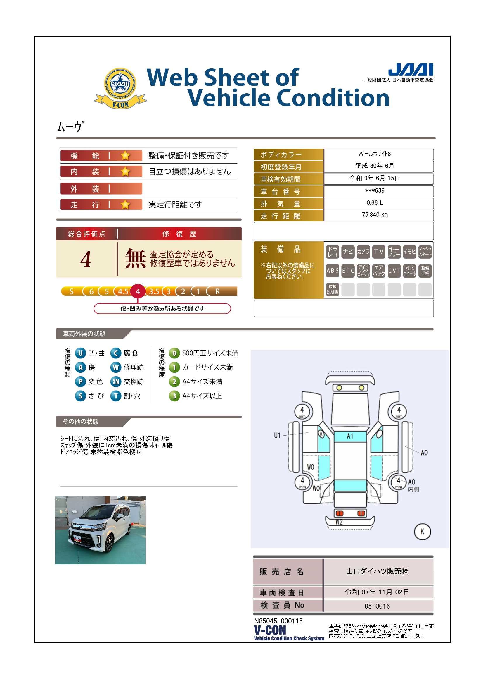 | 定期点検整備コメント | 定期点検整備:付、定期点検整備料金:車両価格に含む | ||