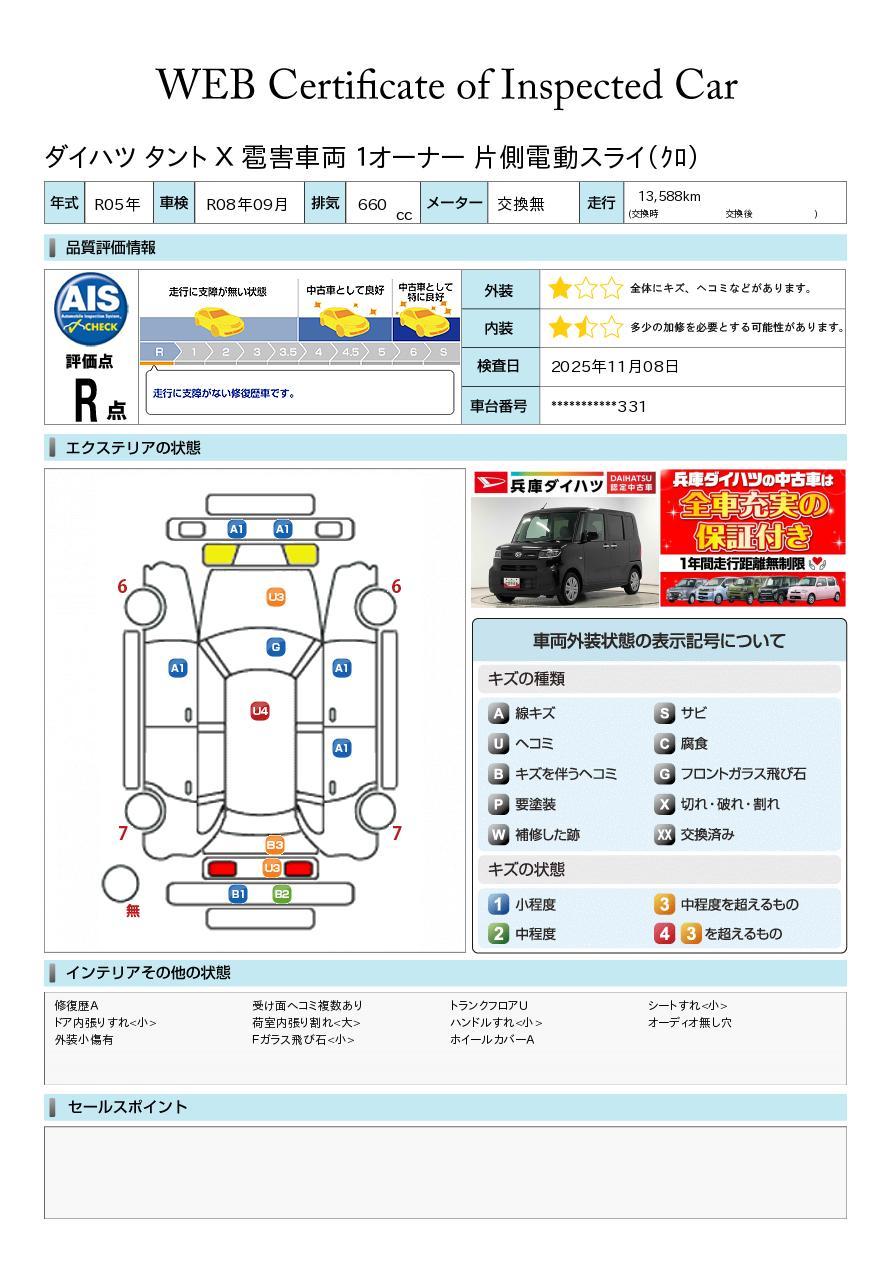 現状の車両の状態に関しましては必ず販売店に確認をお願いします。(2008年10月からの評価基準改定により、一部の車両につき店頭の評価表記と違う場合がございます。詳しくは販売店にお問い合わせください。