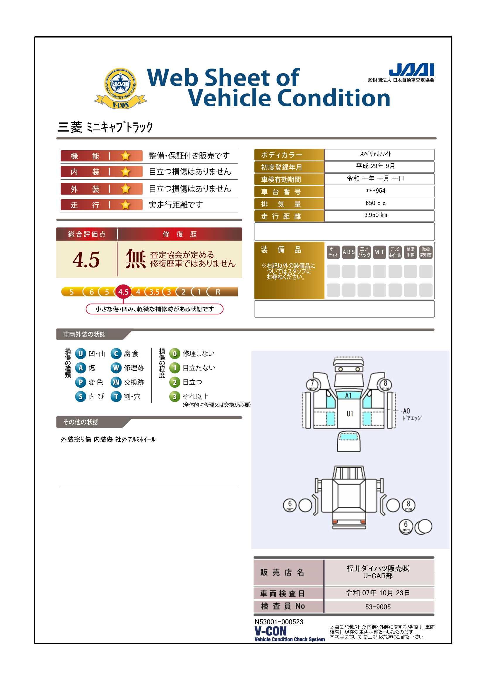 新車メーカー保証に準じた保証(エンジン・エアコン・トランスミッション他)を1年間(走行距離無制限)無償で受けられます。 |