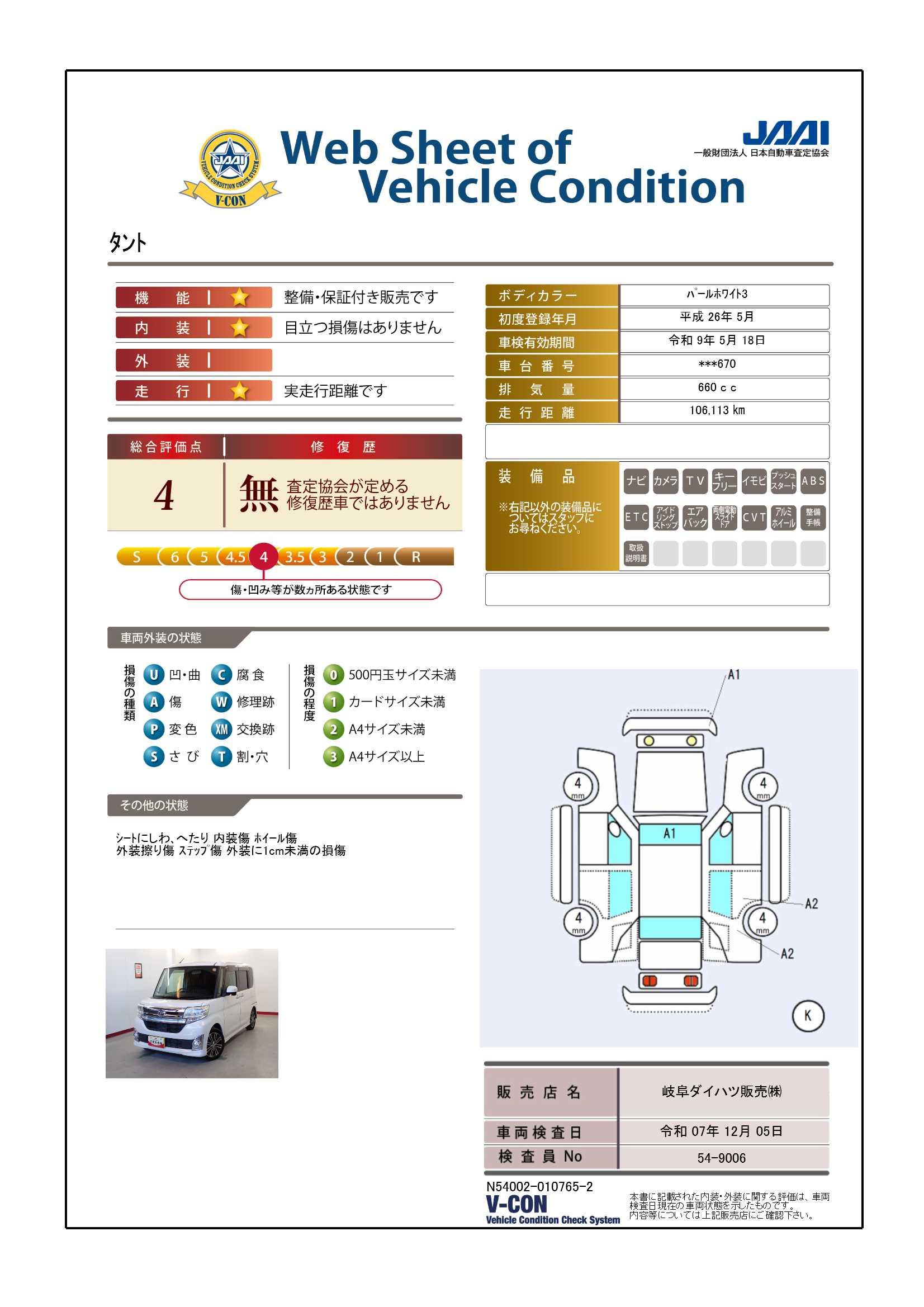 現状の車両の状態に関しましては必ず販売店に確認をお願いします。(2008年10月からの評価基準改定により、一部の車両につき店頭の評価表記と違う場合がございます。詳しくは販売店にお問い合わせください。