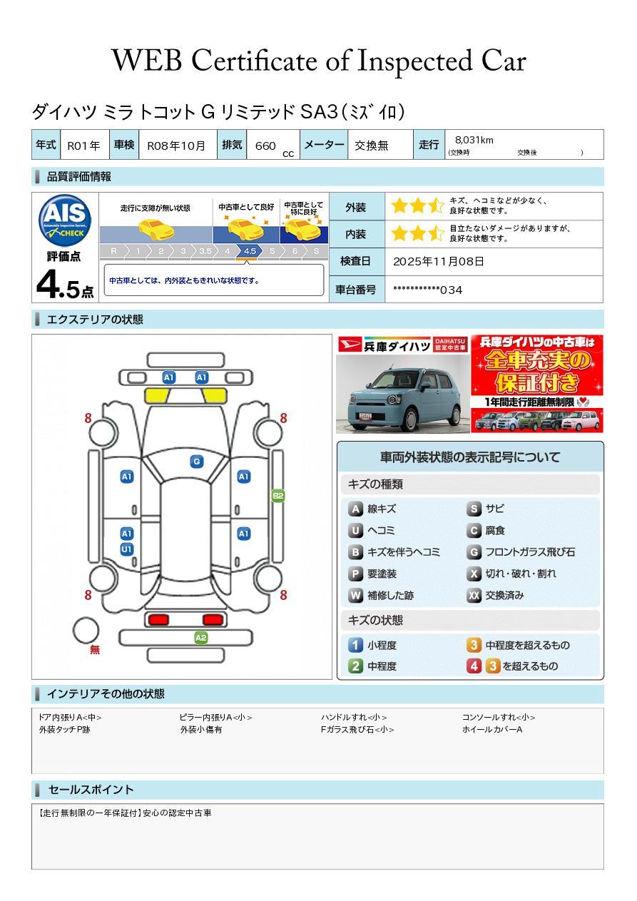 評価点及び上記コメントは、評価日時での車両状態を示したものです。