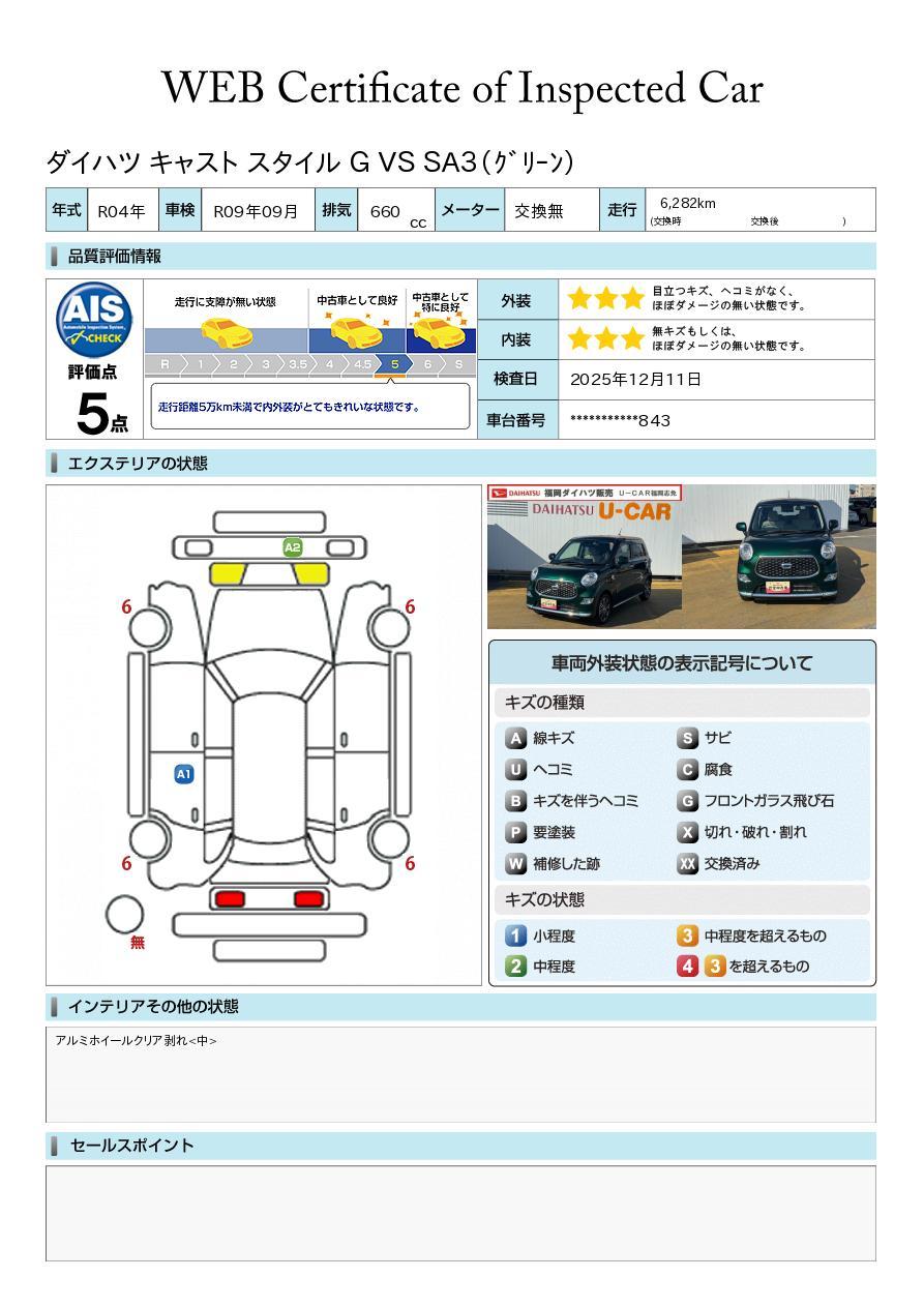 車両状態証明書が付いておりますので、安心してお選び出来ます。詳しくは、スタッフまでお気軽にお問合せください。