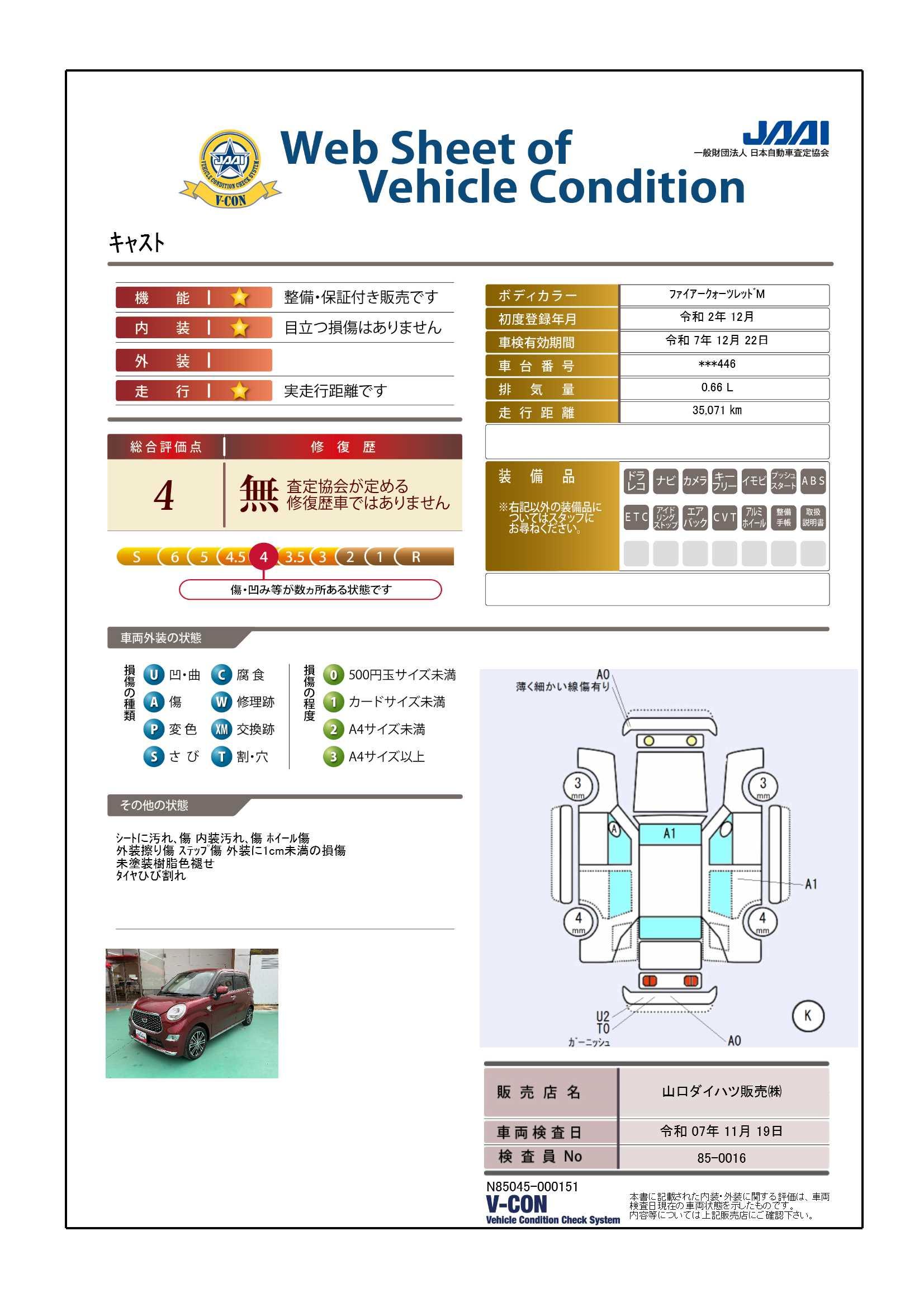 | 定期点検整備コメント | 定期点検整備:付、定期点検整備料金:車両価格に含む | ||
