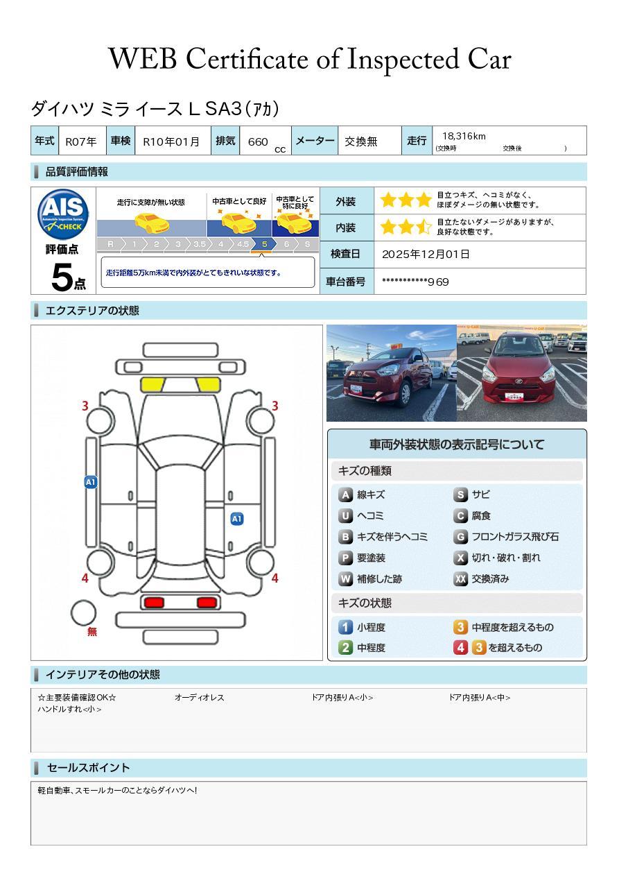 株式会社AISの車両状態証明書となります。