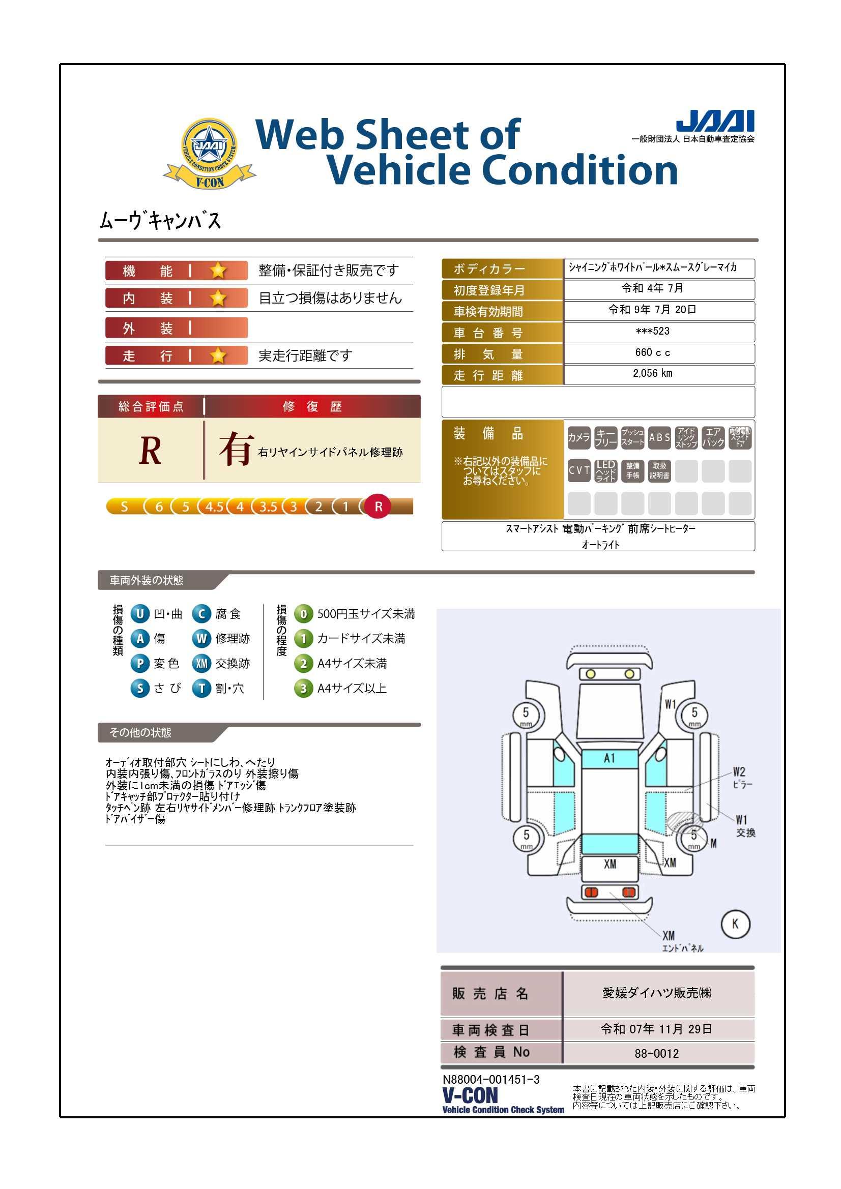 車両状態証明書修復歴の有無も一目瞭然。機能や内装・外装、走行距離、修復歴の有無をチェックし、クルマの状態を10段階にした車両状態証明書。数字や記号を使ってわかりやすく表示しています。