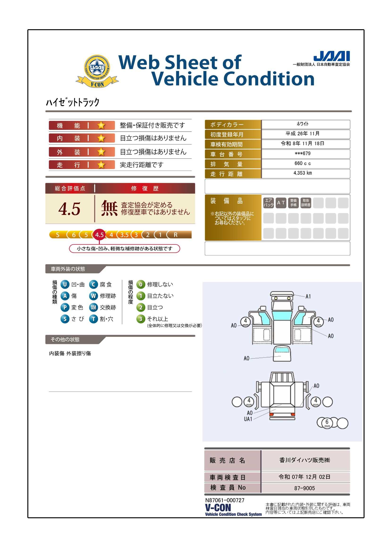 一般財団法人 日本自動車査定協会の車両状態証明書となります。