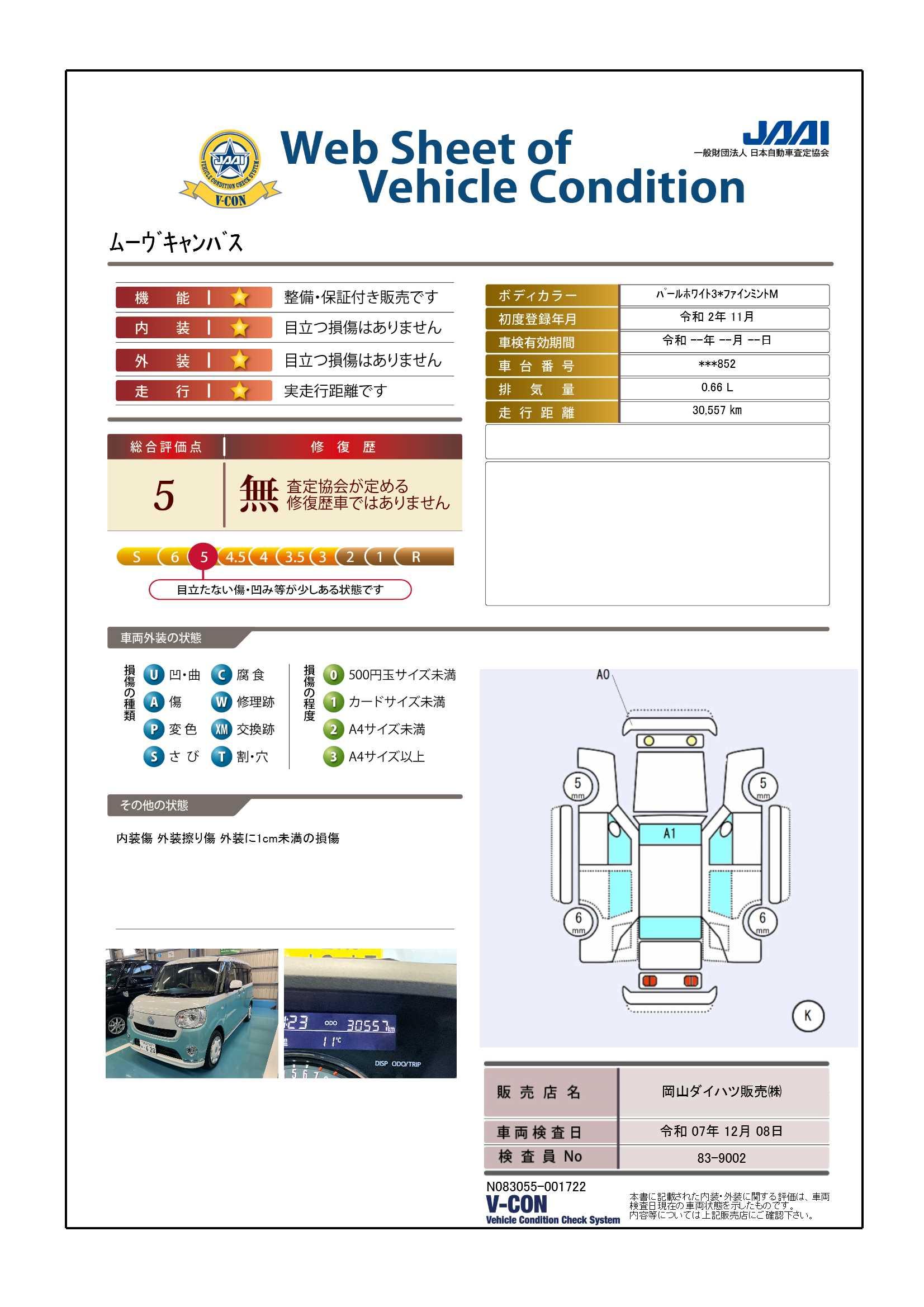評価点及び上記コメントは、評価日時での車両状態を示したものです。