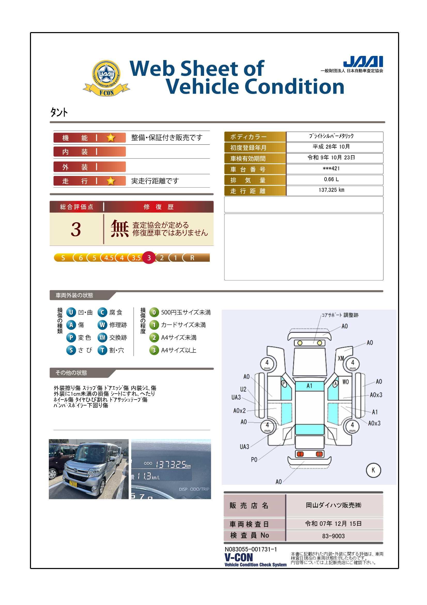 ダイハツ認定中古車は、「車両状態証明書」「約60項目の徹底点検・整備」「内装の徹底清掃と洗浄」「1年間無償保証(車両本体価格30万円以下の車両は3ヶ月または3000kmの保証)」が全車に付いています。