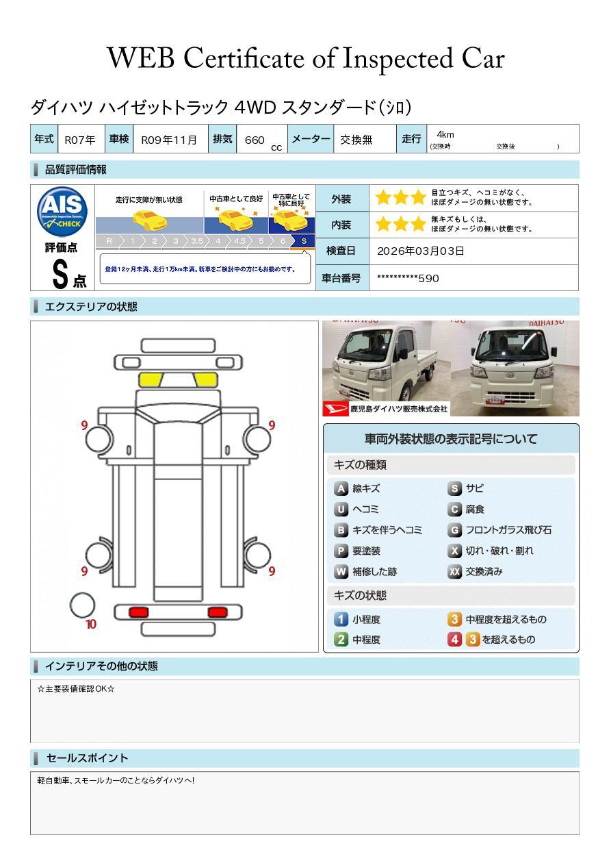 株式会社AISの車両状態証明書となります。