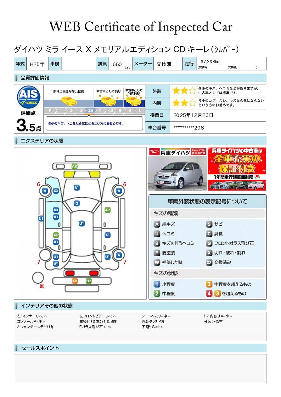 new ミライースX メモリアルエディション CD キーレス 電動格納ミラー(兵庫県)の中古車情報