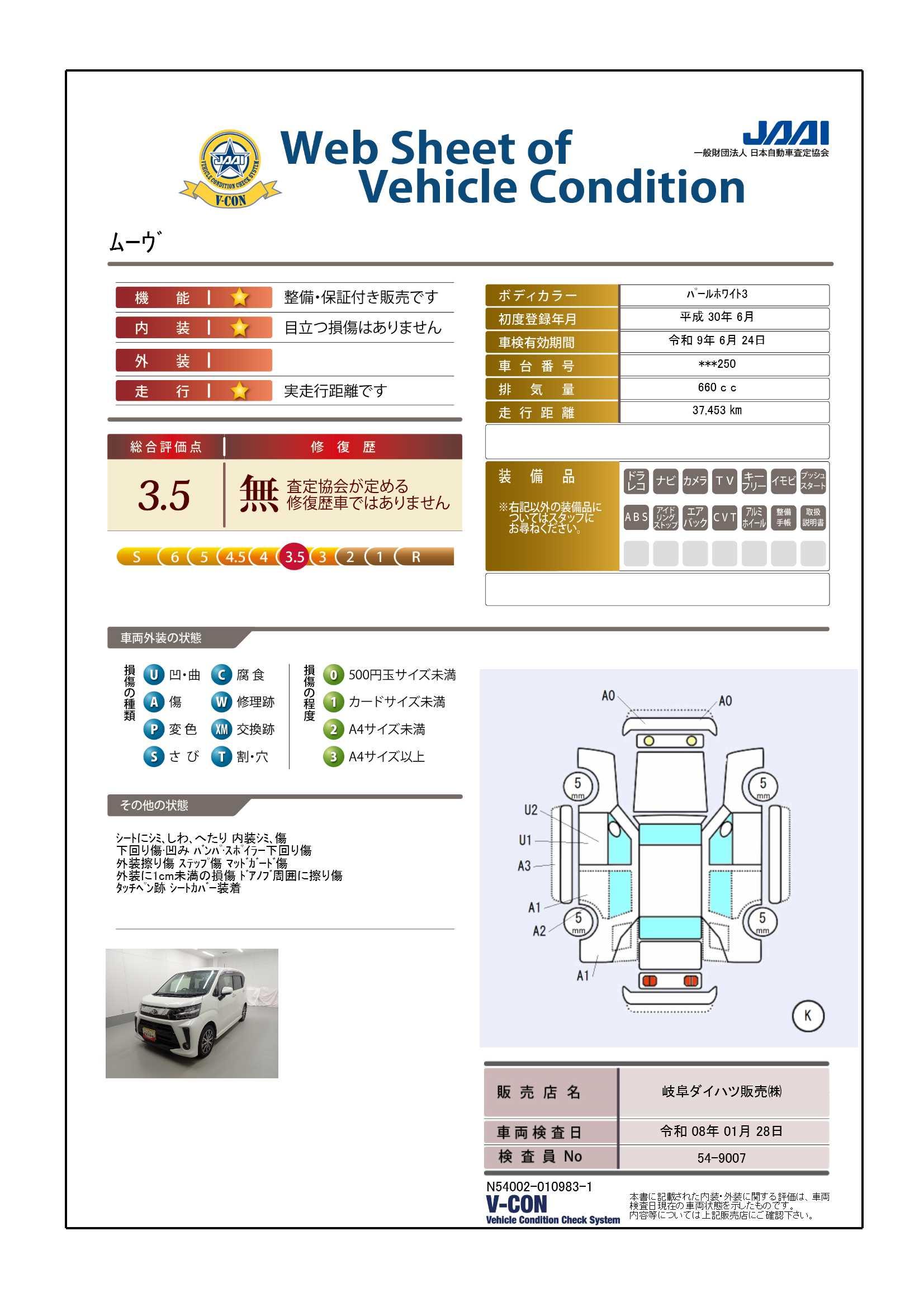 現状の車両の状態に関しましては必ず販売店に確認をお願いします。(2008年10月からの評価基準改定により、一部の車両につき店頭の評価表記と違う場合がございます。詳しくは販売店にお問い合わせください。