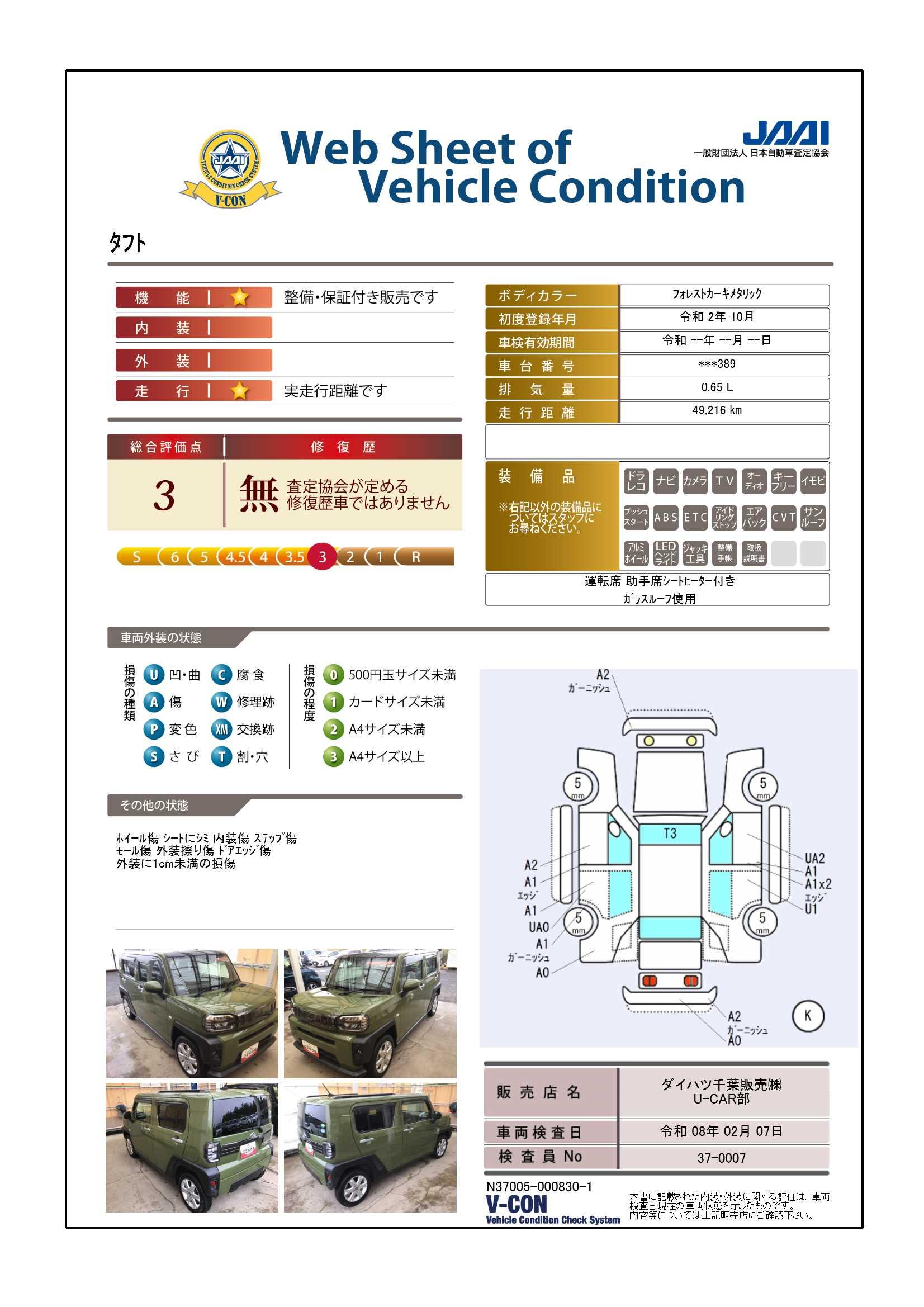 評価点及び上記コメントは、評価日時での車両状態を示したものです。