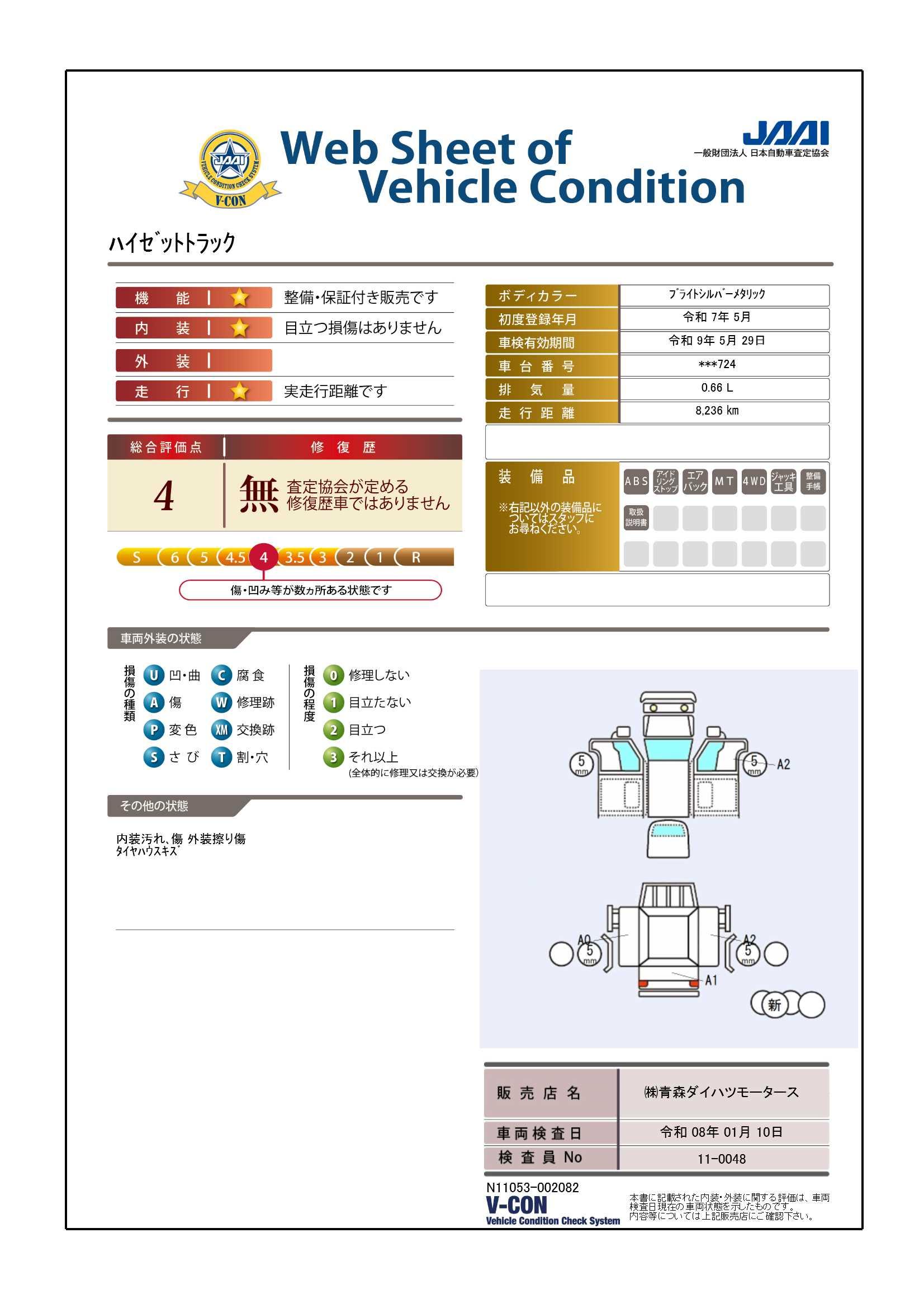 一般財団法人 日本自動車査定協会の車両状態証明書となります。