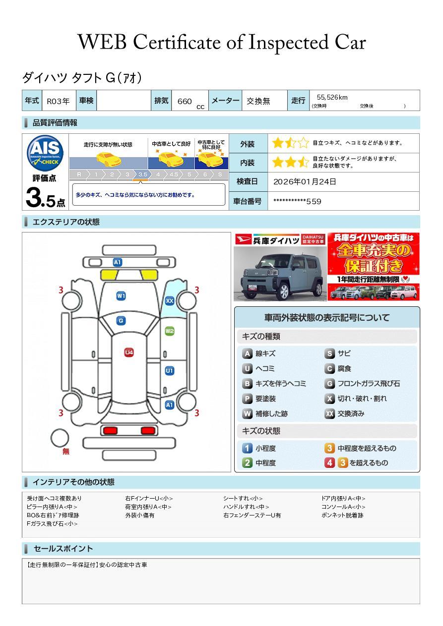 ダイハツ認定中古車なら展示車両の状態を開示しております。展示車両に自信があるからこそ出来るサービスです。