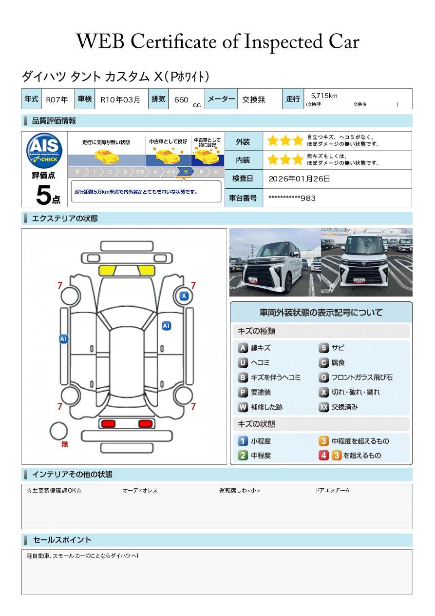 株式会社AISの車両状態証明書となります。