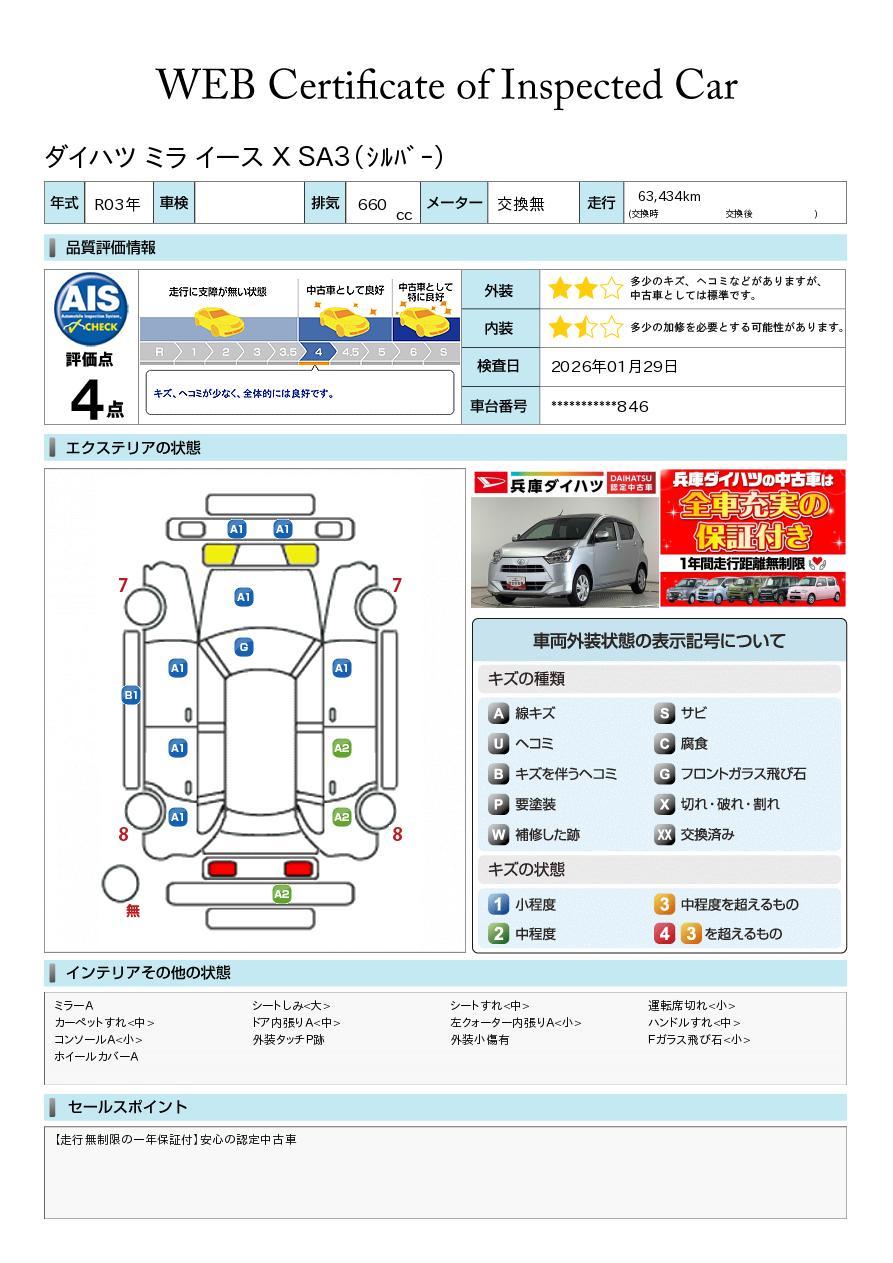 車両状態証明書付き