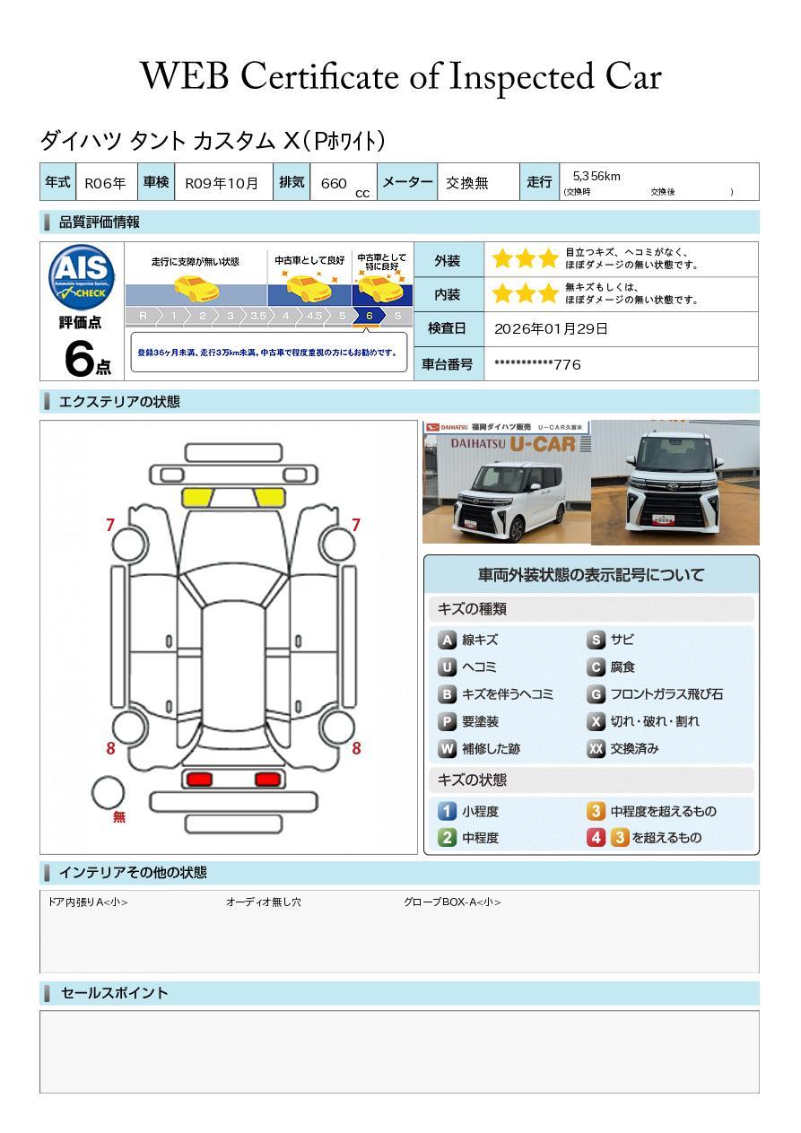 車両状態証明書が付いておりますので、安心してお選び出来ます。詳しくは、スタッフまでお気軽にお問合せください。