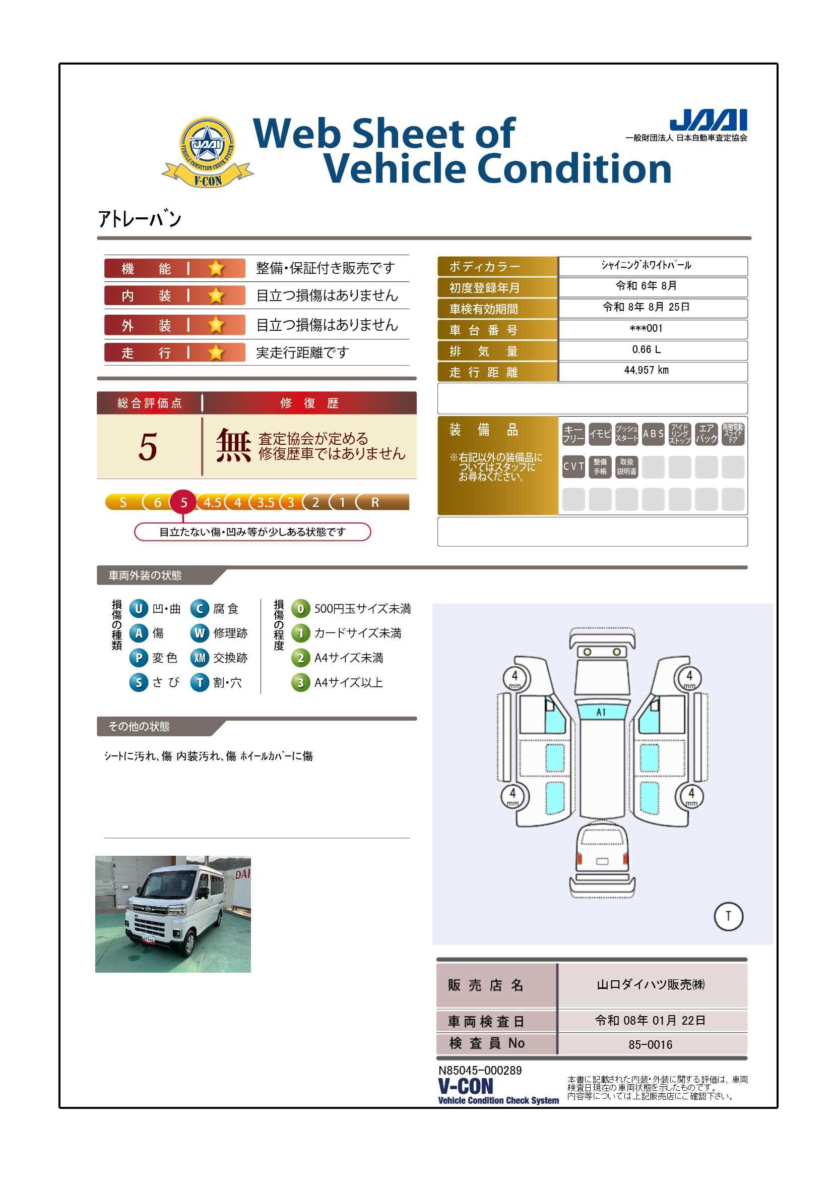| 取扱説明書 | なし | 車台番号末尾 | 001 | 管理番号 | 44500524482 |