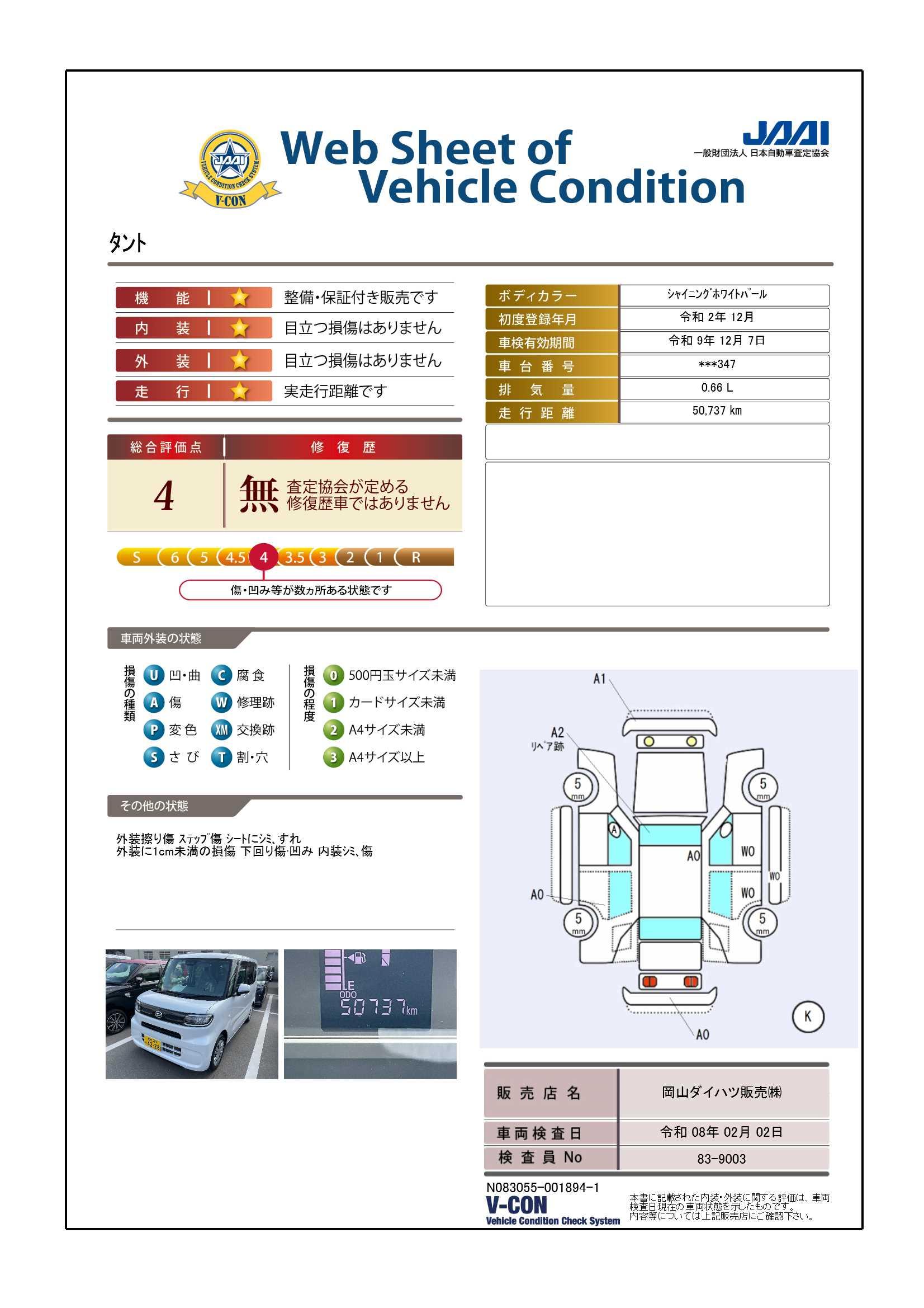 ダイハツ認定中古車は、「車両状態証明書」「約60項目の徹底点検・整備」「内装の徹底清掃と洗浄」「1年間無償保証(車両本体価格30万円以下の車両は3ヶ月または3000kmの保証)」が全車に付いています。